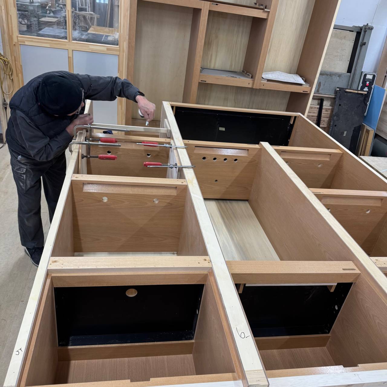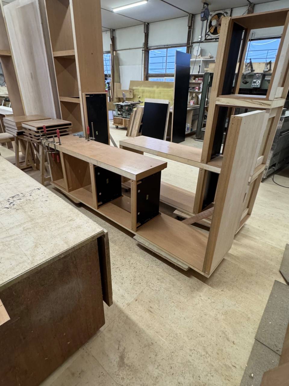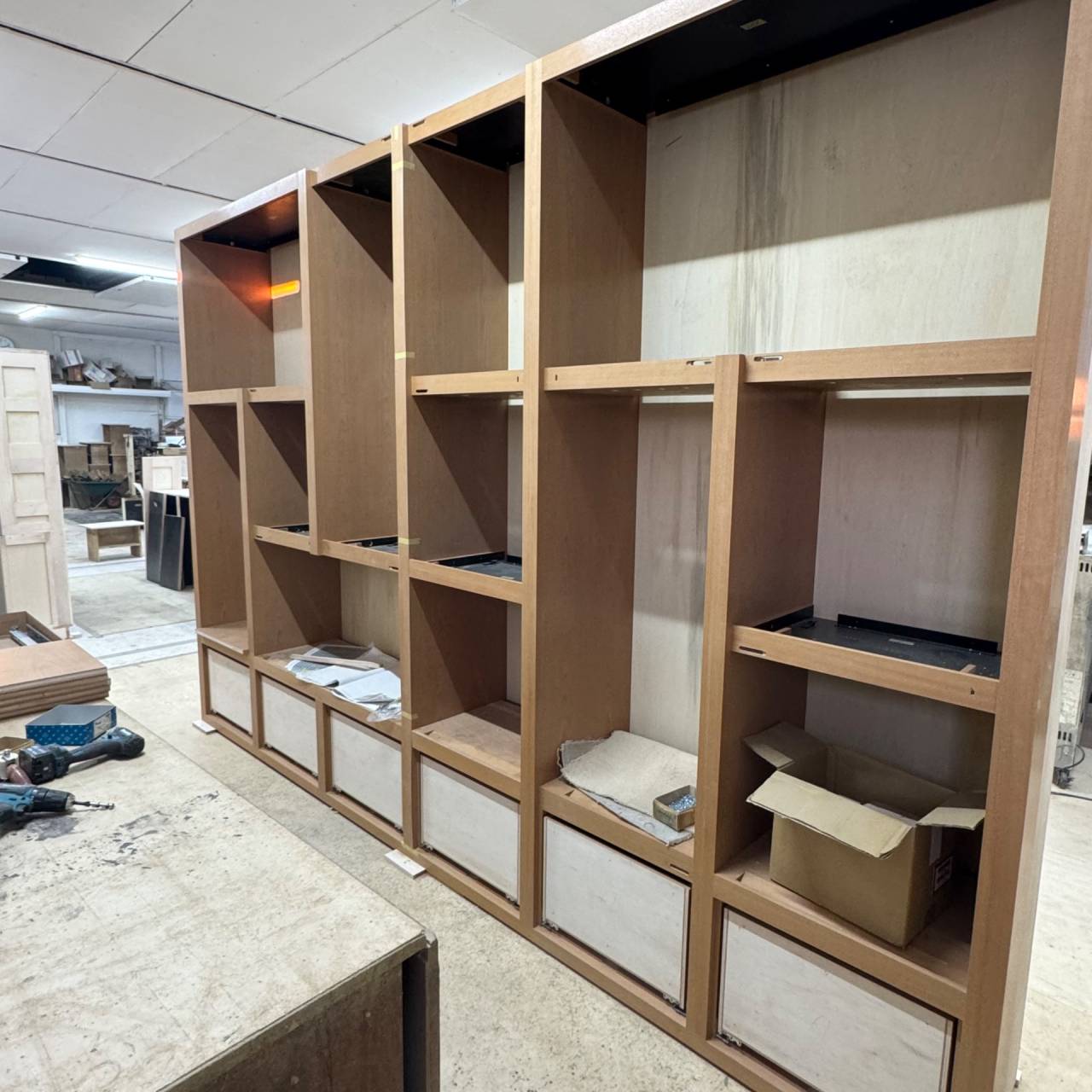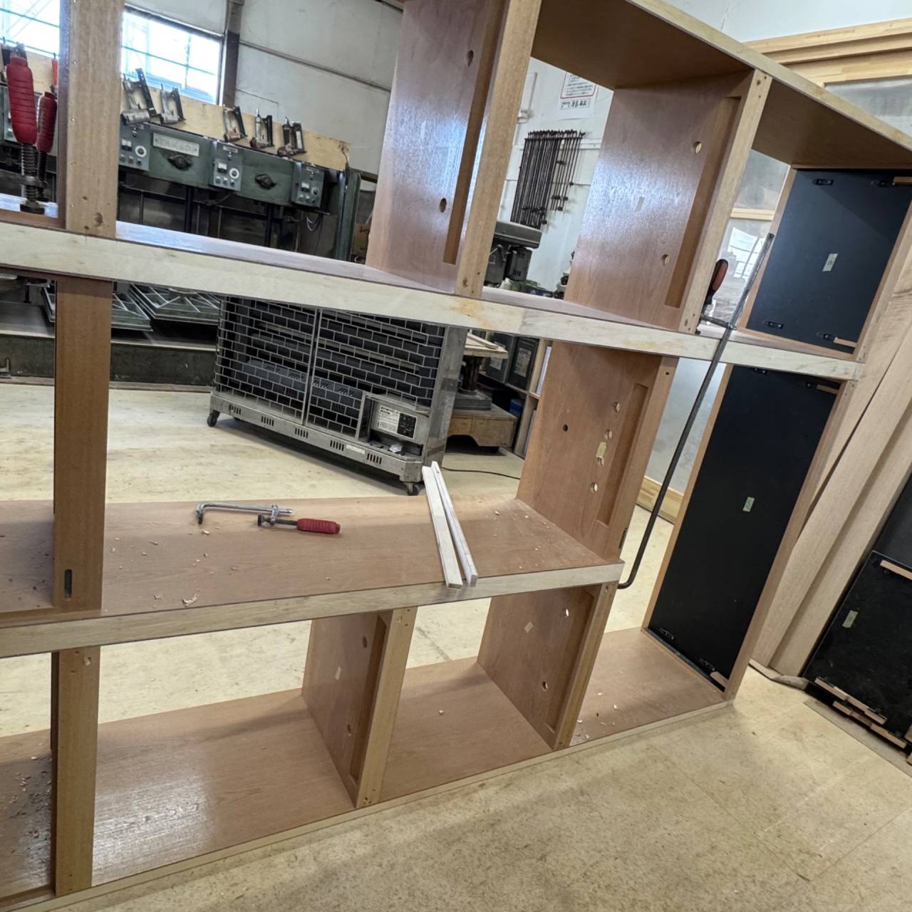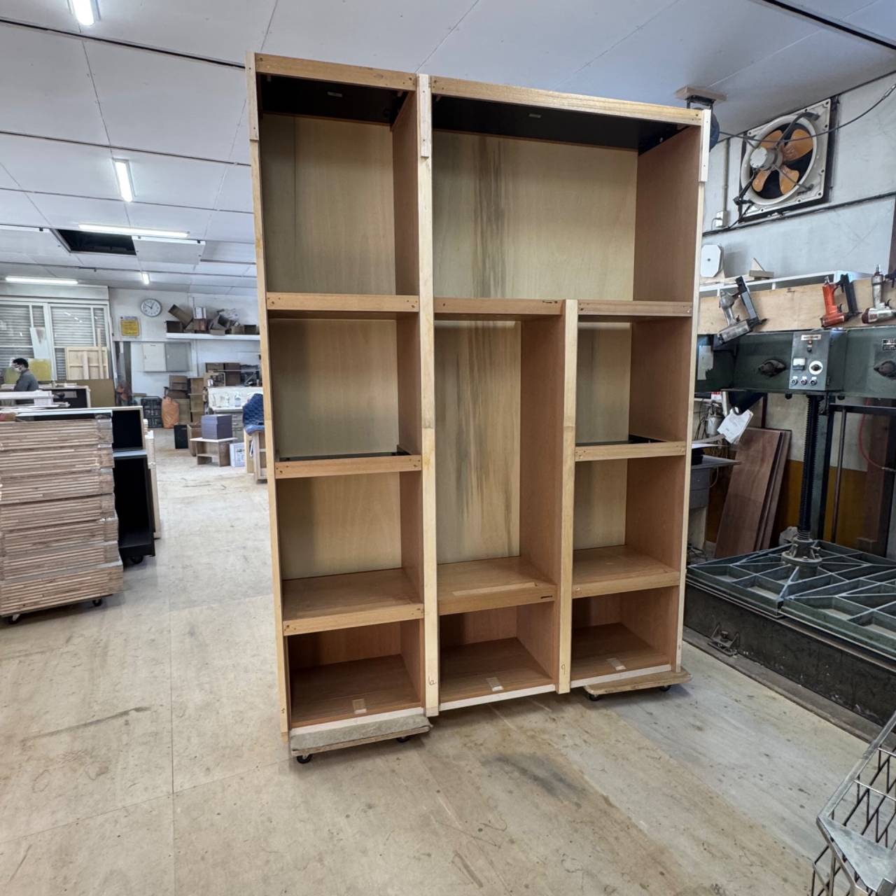 什器製作 2026/04/06 こんにちは(^-^)また、少し間が空いてしまいましたが(^-^; 毎日忙しくさせていただいてます。今回は壁面什器かな?1つずつパーツを造り、組み合わせ1つの什器になります。微調整をしながら! 引き続き職人さん募集中です。よろしくお願いします!